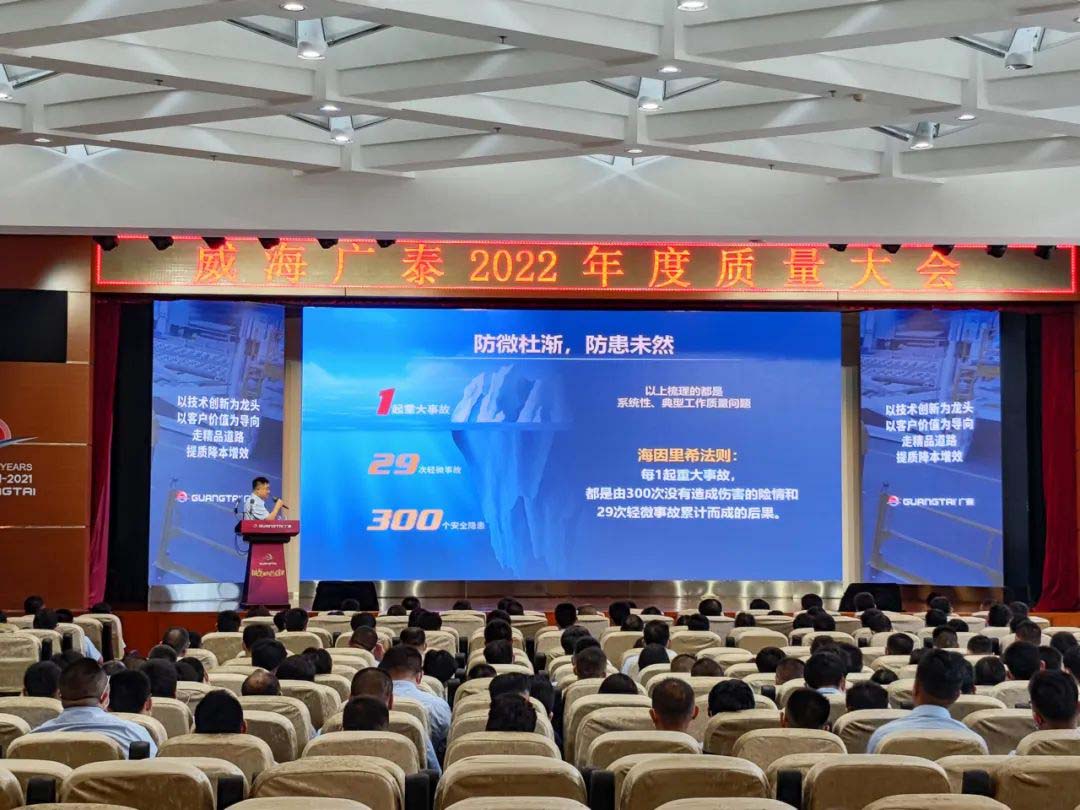 下午13:30,在8868体育研发大楼礼堂,威海8868体育召开以“数据推动质量创新 全面参与持续创新”为主题的2022年度质量大会,李文轩董事长出席会议,公司副总经理尚羽主持会议,各分子公司同步线上参会。