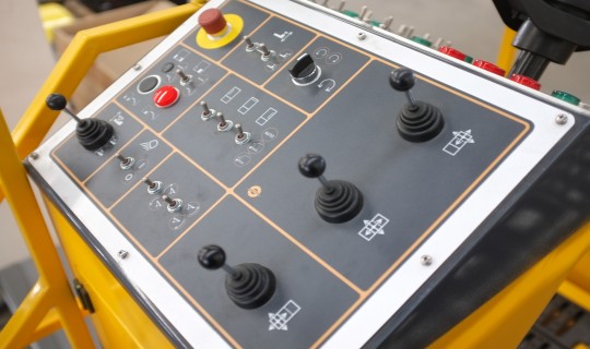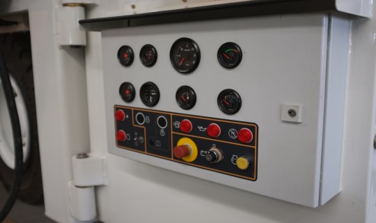 集装货物装载机(混合动力式)是一种全液压转向、前桥驱动,行驶无级变速的自驱动车辆。该设备发动机、液压泵与液压系统之间并联电动机、液压泵,电动机经电缆插头与市电连接,形成双动力系统。当平台车处于行驶状态时由发动机驱动液压泵,为系统提供液压能。进行升降作业时,关闭发动机,为电动机接通市电,由电动机驱动液压泵,为系统提供液压能。