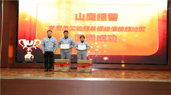 比武经过初赛与决赛两轮激烈的角逐,共评选出一等奖一名:整机车间李峥;二等奖两名:整机车间齐滨、刘婷婷;三等奖三名:整机车间张红、李硕、客服高洪健。由副总经理汤天贞向获奖者颁发奖品与荣誉证书。