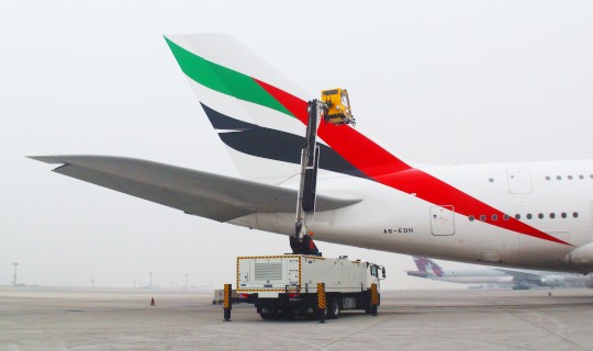 该类设备是将加热到一定温度的除冰液以一定压力喷洒到飞机机身,用于对飞机局部结冰部位或飞机全身进行除冰作业的机场专用设备。同时,还可用于飞机的维修、检查和清洗作业。该设备由汽车底盘、发动机总成、泵室、锅炉、水路系统、伸缩臂、工作舱(斗)、液压系统和电气系统组成。