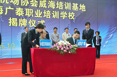 2015年10月,威海8868体育与中国民用机场协会联合在威海8868体育职业培训学校成立“中国民用机场协会威海培训基地”,整合优势资源,互利共赢,共同打造空港地面设备从业人员职业化培训平台,进一步拓宽了师资渠道和培训力量,提高培训质量和实效性,对推进我国机场从业人员资质能力培训的系统化、标准化,具有重要意义。
